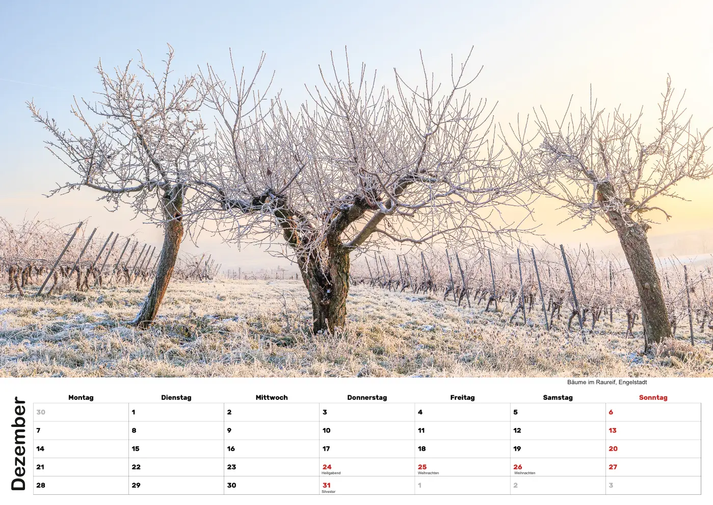 Der Kalender hat das Format DIN A3, 14 Seiten (12 Monate, Titelblatt, Übersicht auf der Rückseite), 250 Gramm mattes Papier. Limitierte Auflage.